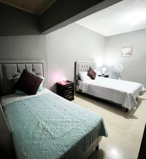 The apartment has an independent entrance and exit and an illuminated hallway. You have two beds available. The kitchen has a microwave, a refrigerator, a blender, a table with four chairs, a stove, a coffee maker, a TV in the bedroom, and towels in the bathroom. It has two bedside tables in the bedroom with their small night lamps and a fan available for you.
